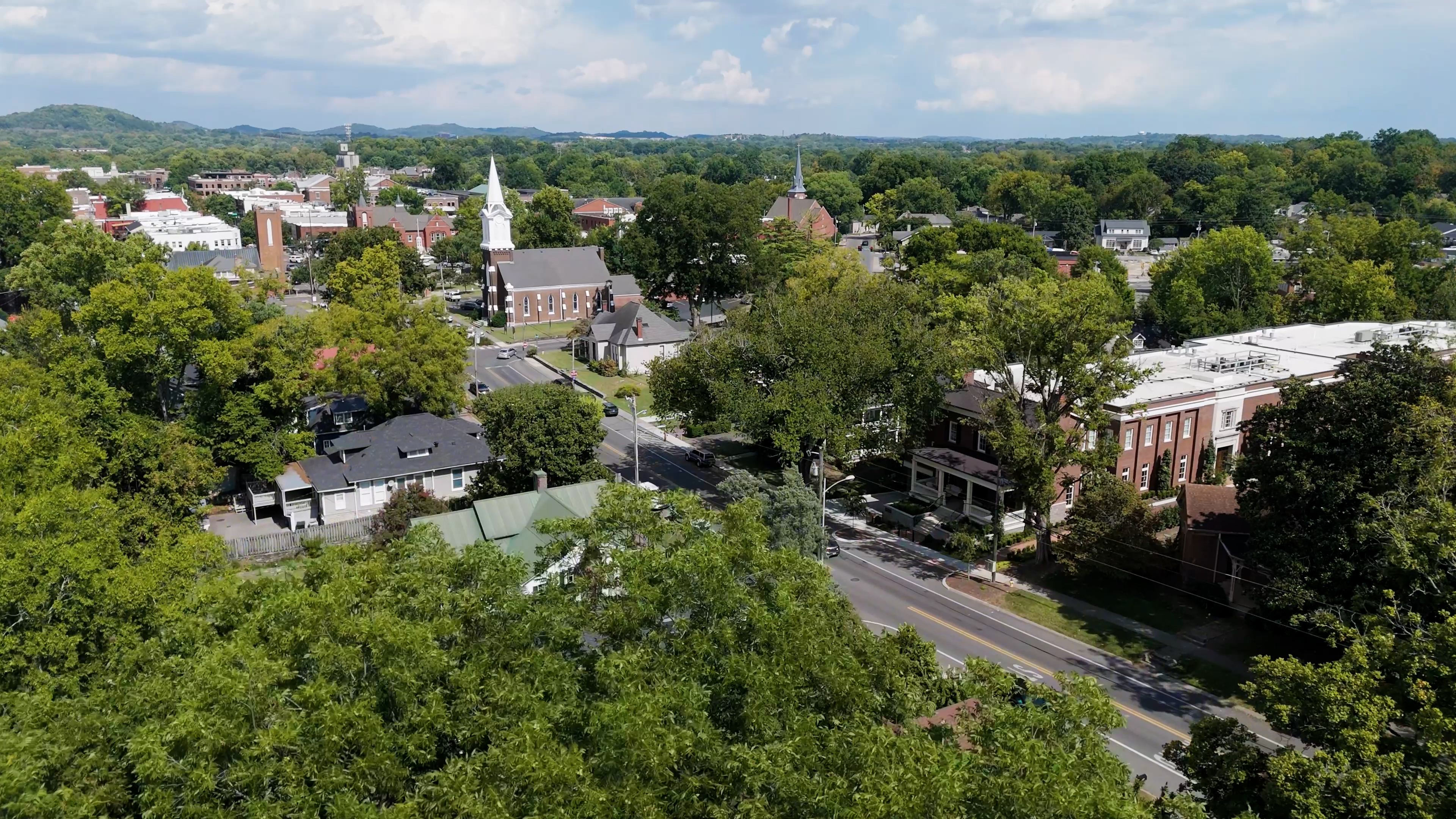 The most walkable areas in downtown Franklin include West Main Street (one block from Five Points), the Columbia Avenue corridor between Lewisburg Pike and Carolyn Avenue, and The Brownstones at Second Avenue, which sit steps from Main Street Franklin.